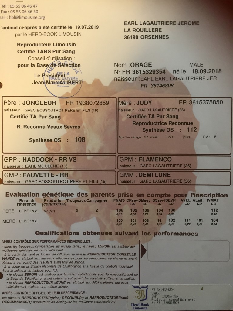 Pedigree Orage RR VS IBOVAL: IFNAIS 105 – CRsev 108 – DMsev 105 – DSsev 94 – FOS sev 104 – ISEVR 110 – IVMAT 113